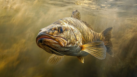 Tranquil Mouthbass fish lake. Big pet. Generate ai