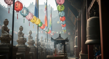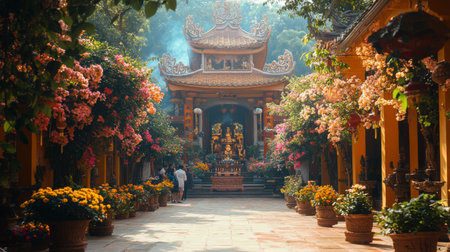 Chinese New Year temple visit, Ai generated image