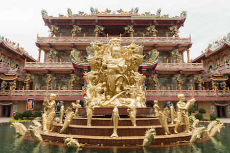 Bangkok, Thailand - June, 23, 2019 : Golden god chinese image, Chinese Temple Wat Borom Racha Kanchanapisek Anusorn (Leng nuei Yee 2), Bangkok.Thailand.