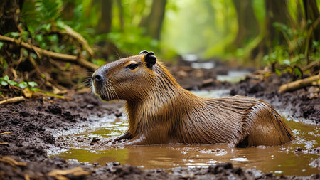 A stunning image capturing a capybara in its natural habitat.