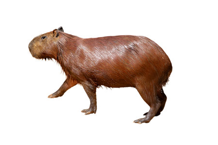 Portrait of a capybara with wet fur, isolated on white background.