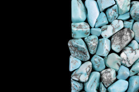 Turquoise jewel stone texture on black background. Macro closeup.