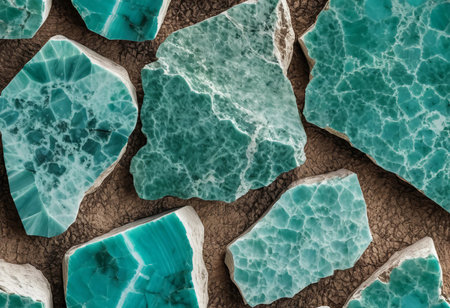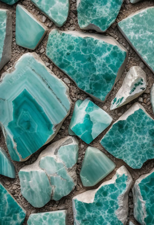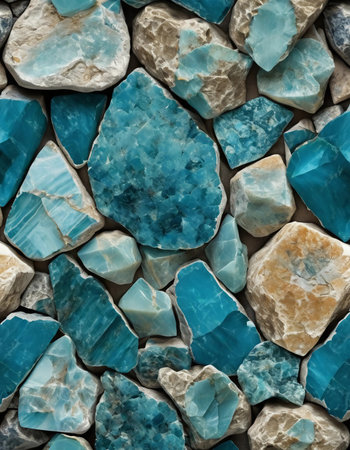 Chunks of amazonite showcase their stunning turquoise hues and striking patterns, inviting appreciation of their unique textures and natural artistry in diverse arrangements.