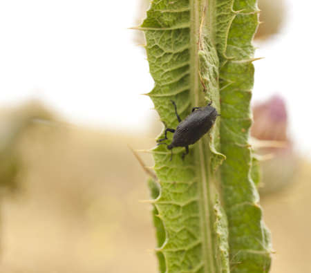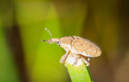 Closeup on a plant parasite weevil , Liophloeus tessulatus , the larvae of which live 2 years in the roots of various plants.