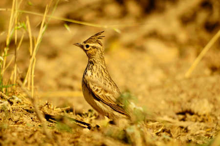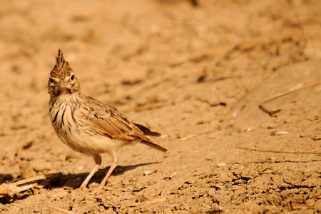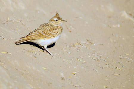 Crested Lark (Galerida cristata) is a common passerine bird in Asia and Europe