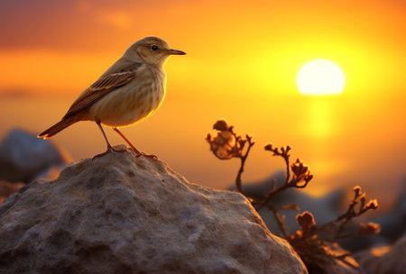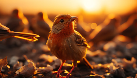 Sunset beauty in nature showcases a cute young bird perching generated by artificial intelligence