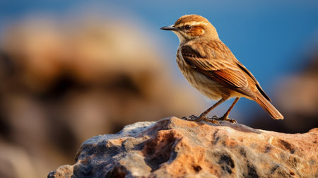 Generative AI : Cute bird Shorttailed babbler Pellorneum malaccense standing on the rock in Nature