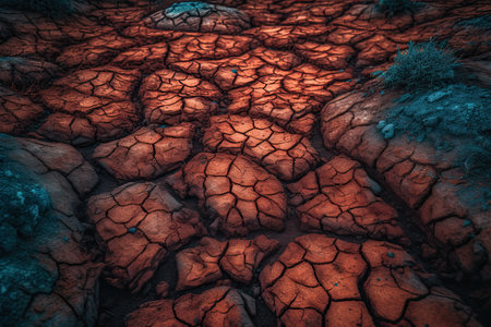 Detailed view of a cracked surface showing intricate patterns and textures caused by natural geological processes. Created with Generative AI