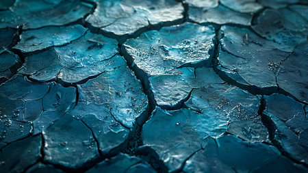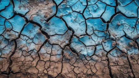 A striking aerial view captures a vibrant, unnatural blue stream carving its path through severely cracked, arid earth. This powerful visual metaphor speaks to themes of drought, pollution, and the stark impact of climate change on our planets landscapes, offering a surreal yet poignant commentary.