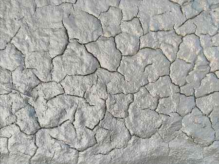 Desiccation cracks texture top view, dried and contracted muddy sediment from above