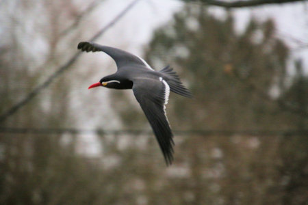 the inka tern is a seabird with gray plumage and red beak with a wise head feather. it lives on the ocean
