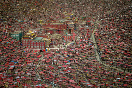 Top view monastery at Larung gar (Buddhist Academy), Sichuan, China