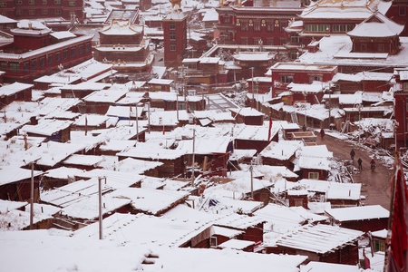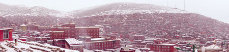 Tibet Buddhist Academy in snow day, Sichuan, China