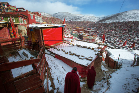 SICHUAN, CHINA - SEP 19 2014: Larung Gar(Larung Five Sciences Buddhist Academy). a famous Lamasery in Seda, Sichuan, China.