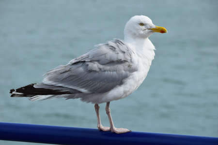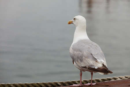 Seagull standing and watching sea by the ferry