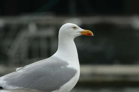 Portrait of a seagull on a pier in the port