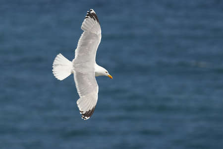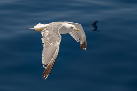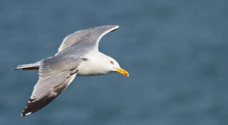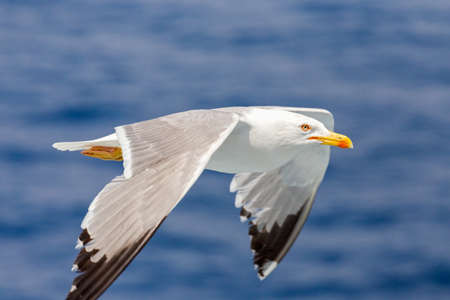 A seagull, Larus michahellis, soaring over the sea
