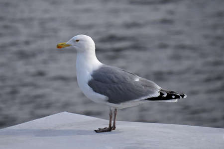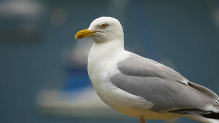 Close up view of a beautiful seagull is white and gray color