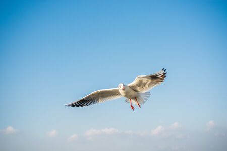Seagull flying in the blue sky, Bangpoo, Thailand
