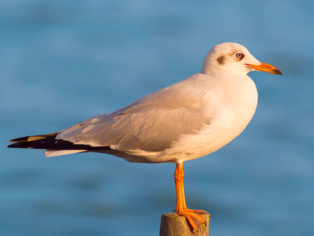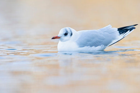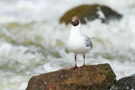 Black-headed Gull bird, Chroicocephalus ridibundus with ring.