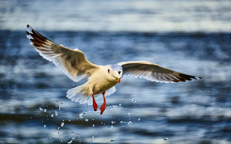 Seagull flying over the blue water