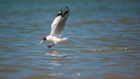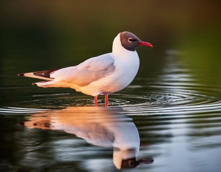 AI Generated. Black-headed gull wading gracefully in shallow waters