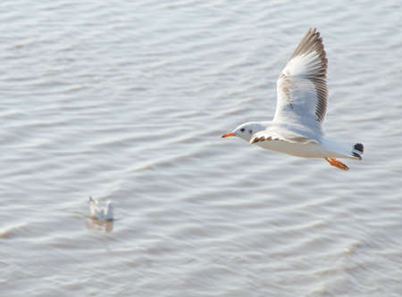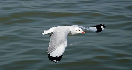 Seagull flying over sea at coast for find food.