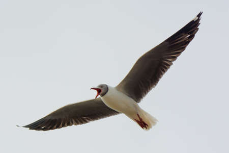 A Grey-Headed Gull screaming in flight