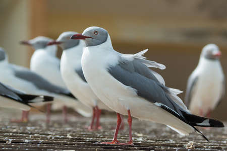 A group of Grey-Headed Gull Larus cirrocephalus lined up on a roof