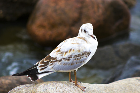 White Sea Gull on the beach on the stone