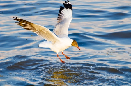 A natural sight of seagulls spreading their wings on the water