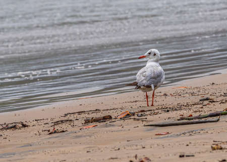 Grey-headed Gull (Chroicocephalus cirrocephalus) on a beach in Paracas Bay, Peru. Paracas Bay is well known for its abundant wildlife.