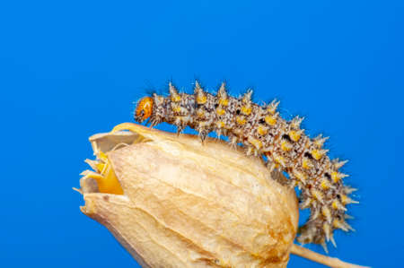 Macro of a caterpillar of a butterfly (Ceratonia aurata)