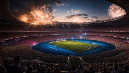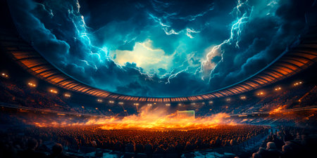 Feel the vibrant energy of a football match with AI-generated art. Immerse yourself in the mesmerizing atmosphere of the stadium. Witness the beauty and intensity of the game,