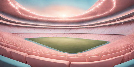 Inside view of the large modern baseball stadium with floodlights and bleachers