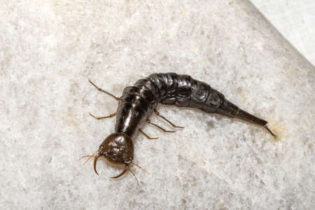 larva of a floating beetle on a rock
