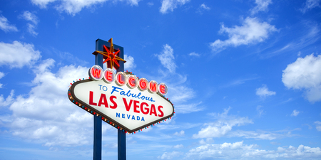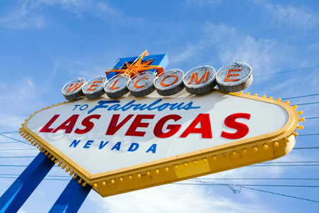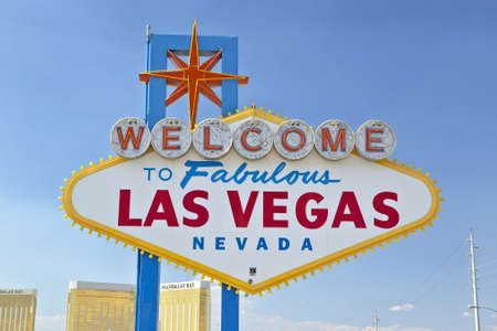 Las Vegas landmark concept, Welcome to fabulous las vegas sign against blue sky, Nevada, USA.