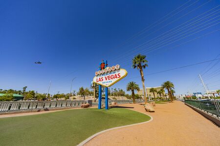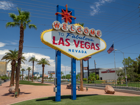 LAS VEGAS, USA - MARCH 29, 2020: Welcome to Fabulous Las Vegas sign on a sunny day in Las Vegas, Nevada, USA