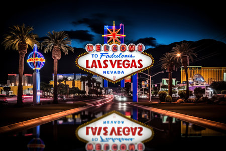 Generative AI : Las Vegas Nevada USA at the Welcome to Las Vegas Sign at dusk