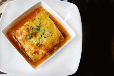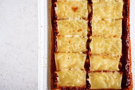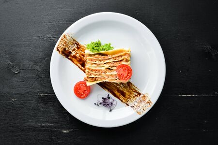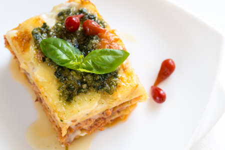 Italian lasagna with meat, cheese and vegetables. Italian food