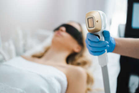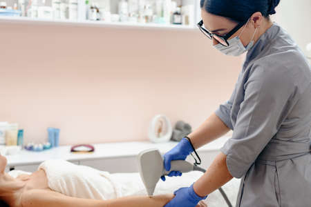 Laser epilation and cosmetology in beauty salon. Hair removal procedure. Laser epilation, cosmetology, spa, and hair removal concept.