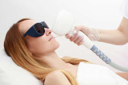 Diode laser hair removal, cosmetologist removes hair on a womans face, laser procedure in the clinic
