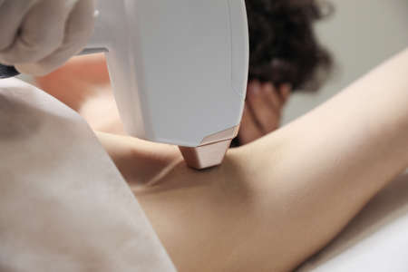 Young woman Receiving Laser Epilation Treatment On Underarms In Spa