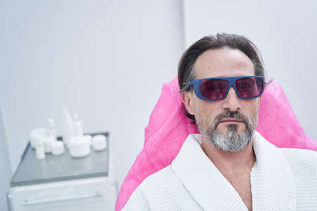 diode laser and glasses, gel and cotton pads on a towel. hair removal with diode laser