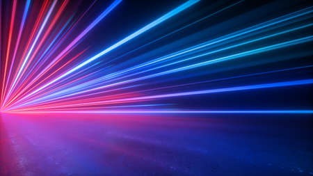 3d render of flash neon and light glowing on dark scene. Speed light moving lines.