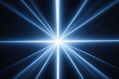 Rays' light, blue on black, abstract