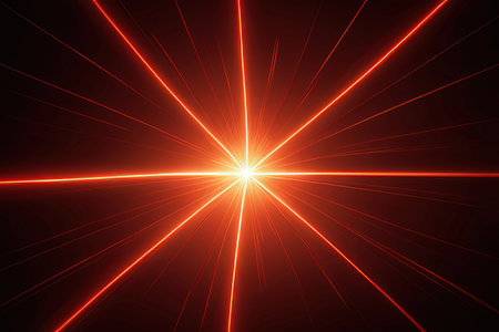 Red laser beam light effect on black background, photo.