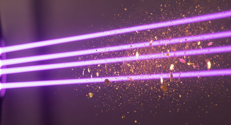 Industrial lasers enhance precision in manufacturing as vibrant beams meticulously weld and process materials, demonstrating cutting-edge technology in action within a modern facility.