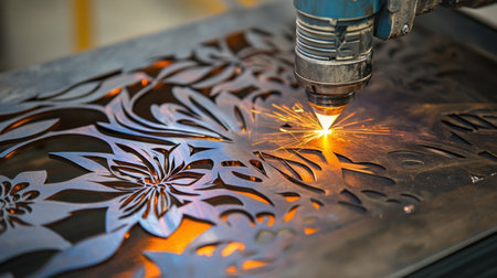 Precision metalwork crafting intricate designs with modern machinery and technology generated by artificial intelligence
