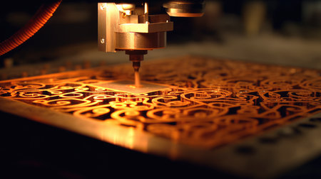 CNC Router Engraving Ornate Design on Wood Modern Manufacturing and Craftsmanship Combined.